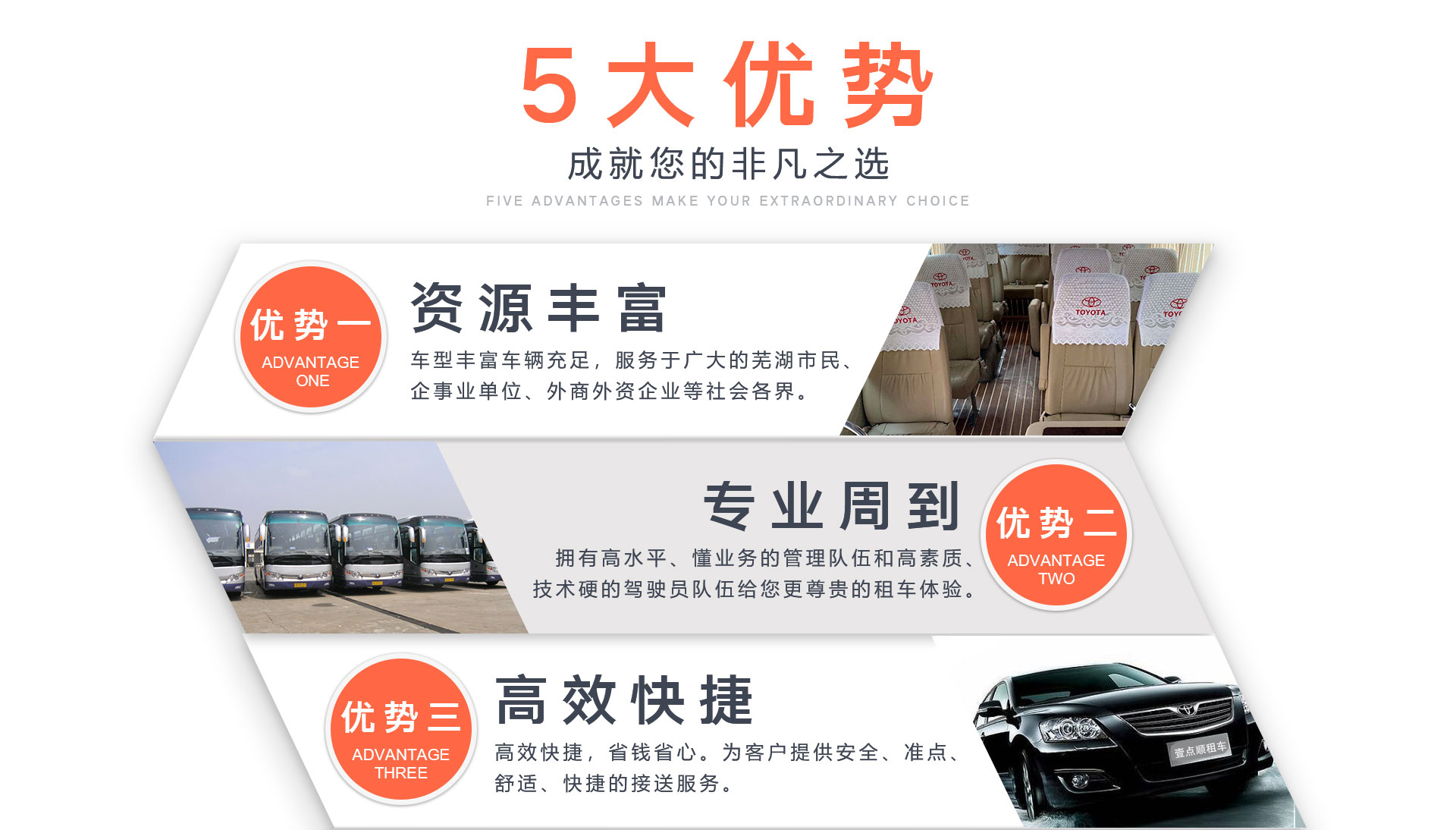 蕪湖壹點(diǎn)順汽車(chē)服務(wù)有限公司,自成立以來(lái)堅(jiān)持以“安全至上、服務(wù)至上、信譽(yù)至上”為宗旨,服務(wù)于廣大的蕪湖市民、企事業(yè)單位、外商外資企業(yè)等社會(huì)各界。蕪湖市是經(jīng)濟(jì)發(fā)展中的城市,在市運(yùn)管處的領(lǐng)導(dǎo)和指導(dǎo)下,公司秉承顧客至上的經(jīng)營(yíng)理念,周到服務(wù),踏實(shí)經(jīng)營(yíng)。公司經(jīng)營(yíng)車(chē)輛轎車(chē)全部裝備車(chē)輛GPS全球定位監(jiān)控系統(tǒng),能夠?qū)?chē)輛全程監(jiān)控。同時(shí)公司長(zhǎng)期承擔(dān)蕪湖本地多家大型企業(yè)的單位員工接送。同時(shí)多次承接了蕪湖大型會(huì)議用車(chē)。公司...